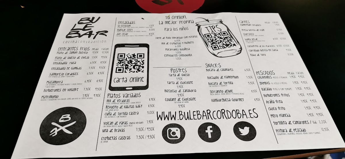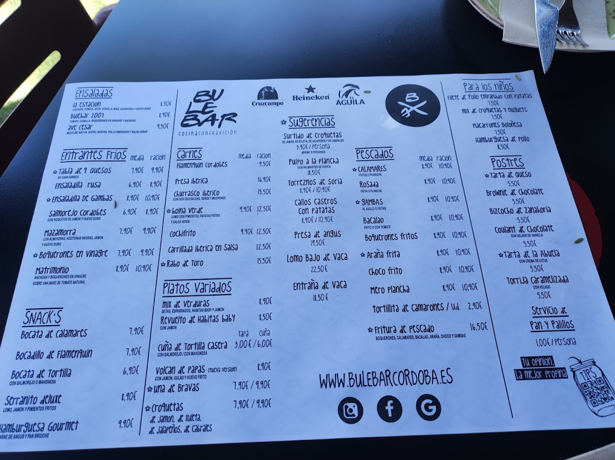 Bar Bulebar Córdoba Menu
